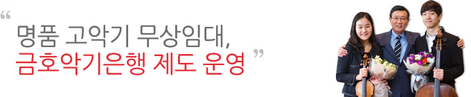 금호문화재단은 1993년부터 명품 고악기를 구입하여 장래가 촉망되는 젊은 연주자들이 값비싼 악기에 대한 걱정 없이 오직 연주에만 몰두할 수 있도록 금호악기은행 제도를 마련하여 악기를 무상 대여하고 있습니다.
